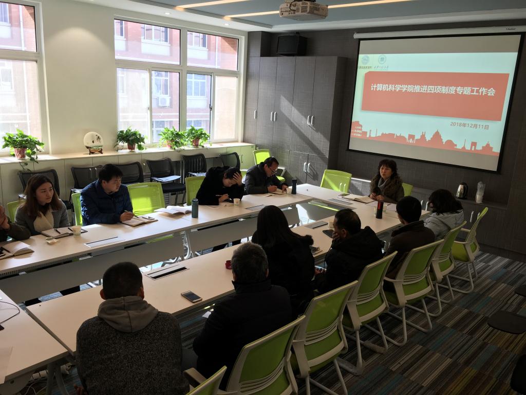 “四项制度”是指“服务承诺制、首问负责制、限时办结制和协调联动制”是学校为了加强作风建设、强化服务意识、提升服务质量的有效举措。自学校文件下发后,院党委高度重视,在传达领会文件精神的同时,积极结合学院实际情况,制定了学院详细的实施计划。此次专题工作会,一方面,是为了总结前期工作中的经验,另一方面是为了研讨落实下一阶段性工作的具体实施。