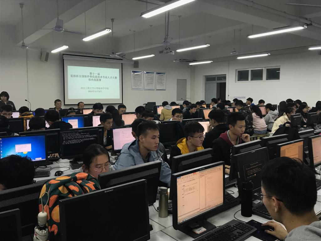2019年11月6日晚,必赢线路检测中心在临潼校区7号楼举办“第十一届蓝桥杯全国软件技术人才大赛”校内选拔赛。旨在培养我校学生对软件编程的兴趣,强化实践动手能力及创新思维能力,加快我校计算机相关专业教学改革与创新,切实提高人才培养质量。