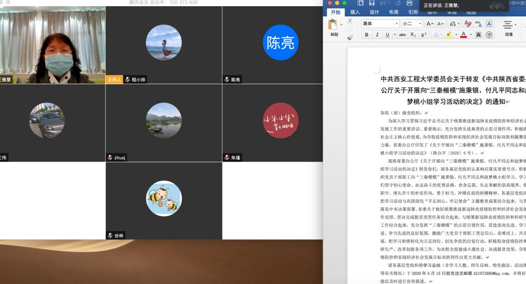 4月13日下午,必赢线路检测中心召开党委理论学习中心组学习会,认真学习施秉银等“三秦楷模”和全省优秀共产党员的先进事迹并开展讨论交流。会议采取线上线下相结合的方式进行,会议由院党委书记王雅慧主持。