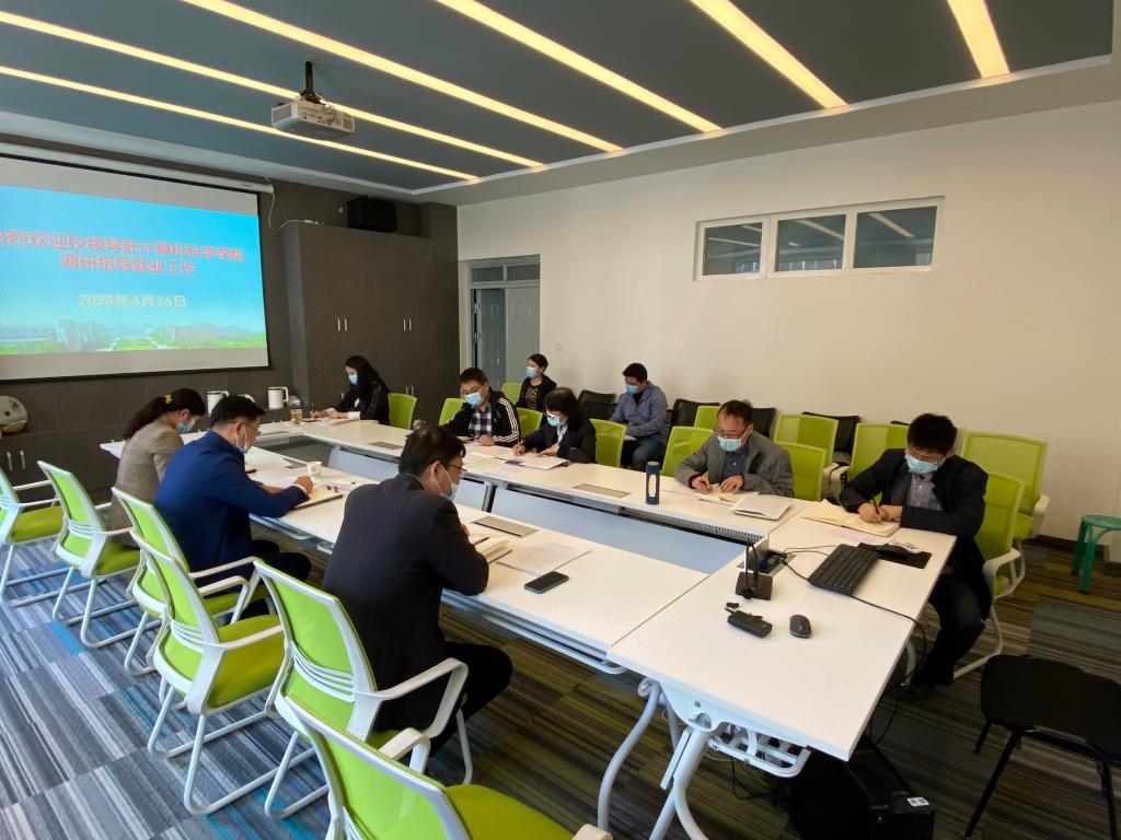 4月26日下午,副校长王进富、招就处处长张冬梅、副处长苏博一行到访必赢线路检测中心,就学院2020年毕业生就业工作进行调研指导。学院党政领导、办公室主任、学工办主任和部分辅导员参加了调研会。会议由院党委书记王雅慧主持。
