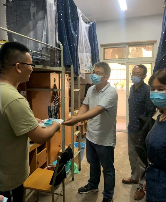 5月23日,必赢线路检测中心党委书记王雅慧、院长薛涛、副书记周波和研究生辅导员程帅深入返校研究生公寓和实验室,现场指导返校学生的卫生防疫工作,并为大家送上学校准备的“爱心防疫礼包”和《防疫知识手册》。