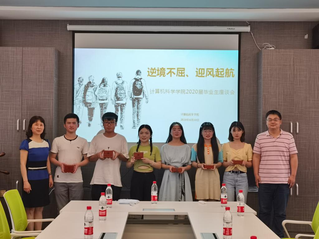 座谈会上,毕业生代表畅谈了自己大学生活的感悟,总结在校求学的丰硕成果,表达对母校的眷恋之情,展望对未来的规划与憧憬。同时,结合自己学习生活,为母校科学发展建言献策。考入中国科学技术大学的网络工程专业韩熙宇同学感激学院搭建的科研、竞赛平台,他鼓励大家在新的起点再接再厉,为母校继续增光添彩。来自甘肃陇南的建档立卡学生刘棋军同学,也分享了自己大学四年的所学所得,他感谢学院一直以来在各方面的高标准严要求,让他没有气馁,直面困难,奋起直追。