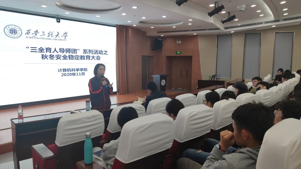 2020年11月5日下午,必赢线路检测中心召开了“三全育人导师团”系列活动之秋冬安全稳定教育大会。学院学工办主任朱瑾、2017级辅导员张鑫及各年级学生干部参加了大会。