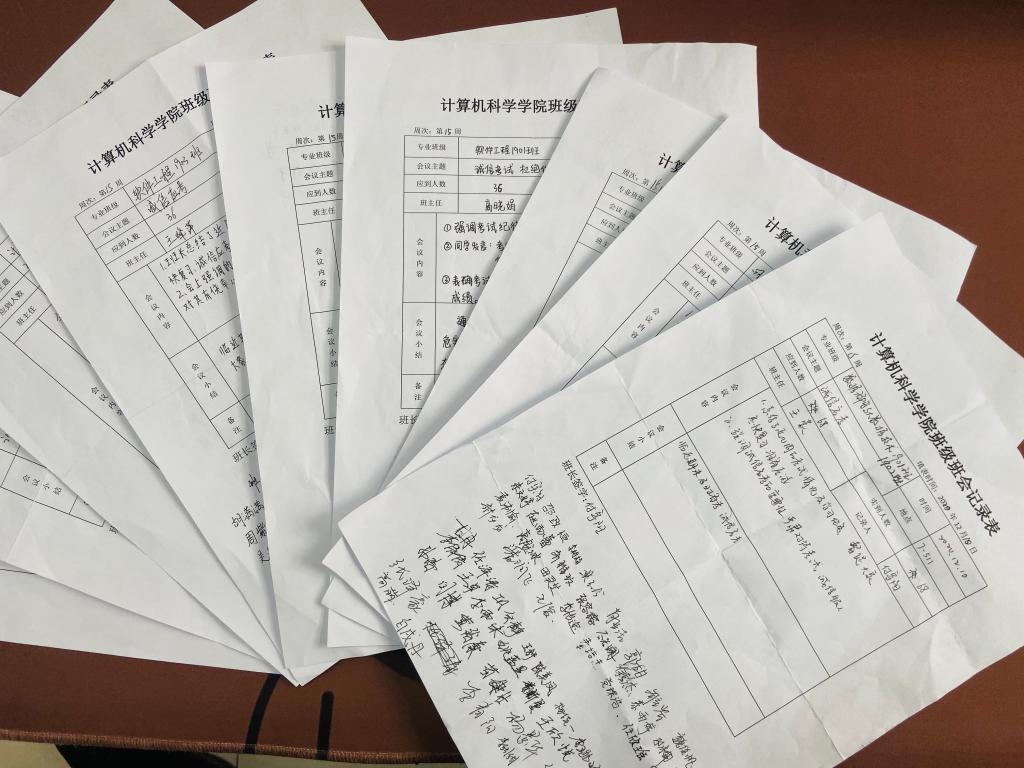 会后,各班也积极响应,纷纷召开了主题班会,并将会议记录及会议照片及时留存上报,将严肃考风考纪的要求传达给每一位学生。通过班会记录反馈,各班同学们对考试作弊的严重后果有了更加清醒的认识,纷纷承诺将做到严肃考风考纪,杜绝作弊,树立良好学风,端正学习态度,积极复习,为接下来的期末考试做好准备。(撰稿:薛绍凡 审核:王雅慧)