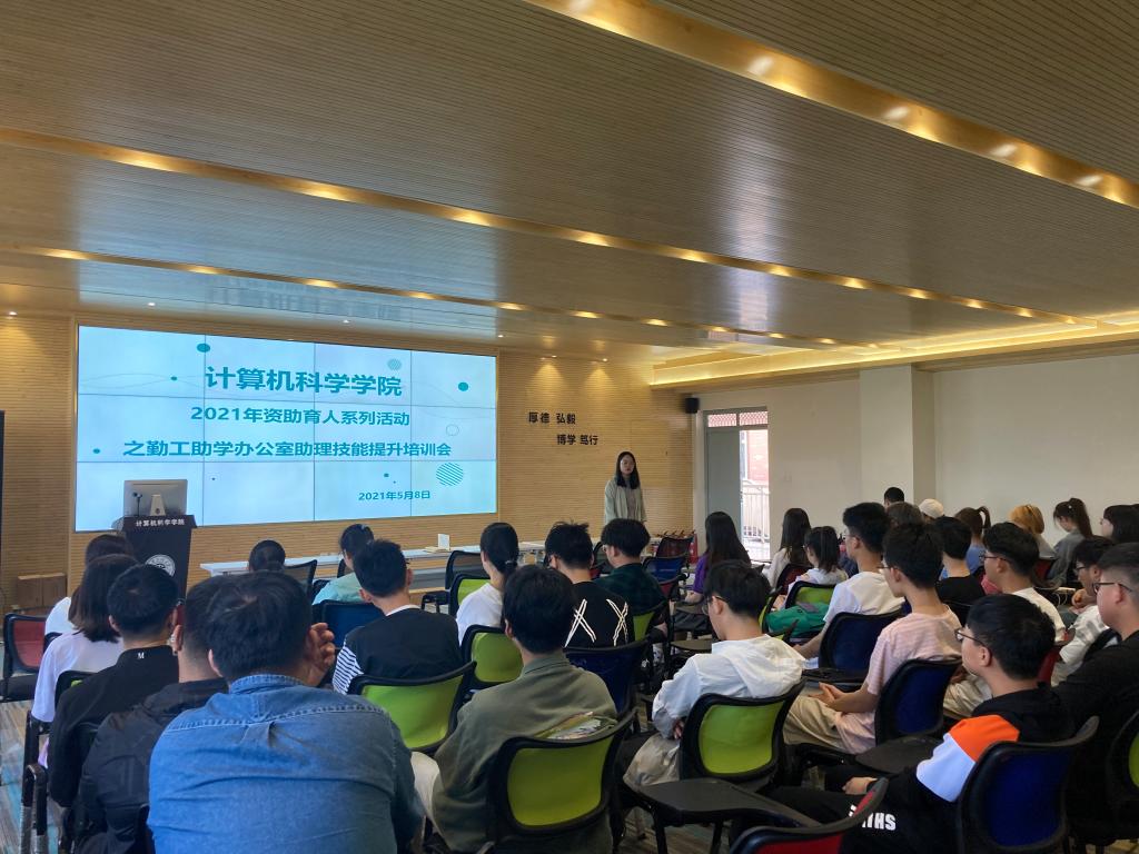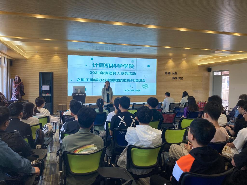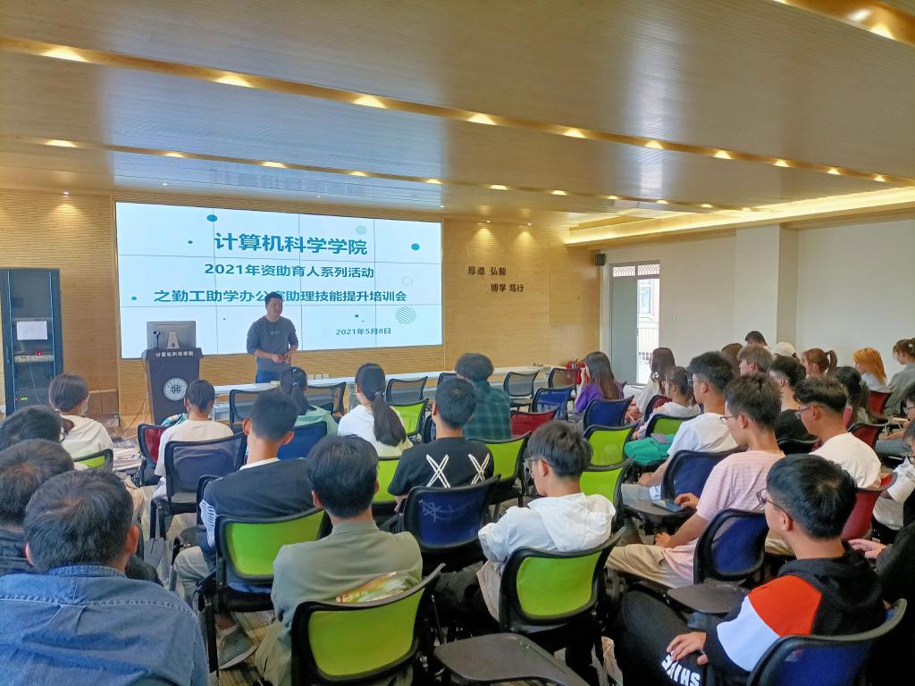 5月8日,必赢线路检测中心在笃行楼614学术报告厅举办资助育人系列活动之勤工助学办公室助理技能提升培训会。学院学工办主任朱瑾、团总支书记薛绍凡、学生资助专项辅导员张鑫、2020级辅导员左温慧及全体勤工助学办公室助理50余人参会。