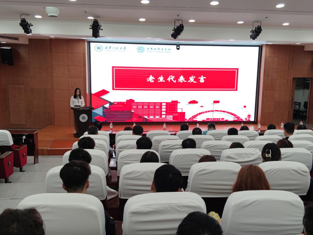随后毕明洋作为老生代表发言,她表示新同学们不仅需要按照培养计划的安排,学好各门基础课程,还要多看专业领域相关的书籍和文献,要脚踏实地、志存高远、不忘初心、砥砺前行。史楠作为新生代表进行表态发言,所有新生要做好研究生阶段的人生规划,还要刻苦钻研、锲而不舍,发扬艰苦奋斗的精神,一定圆满完成学习研究任务。