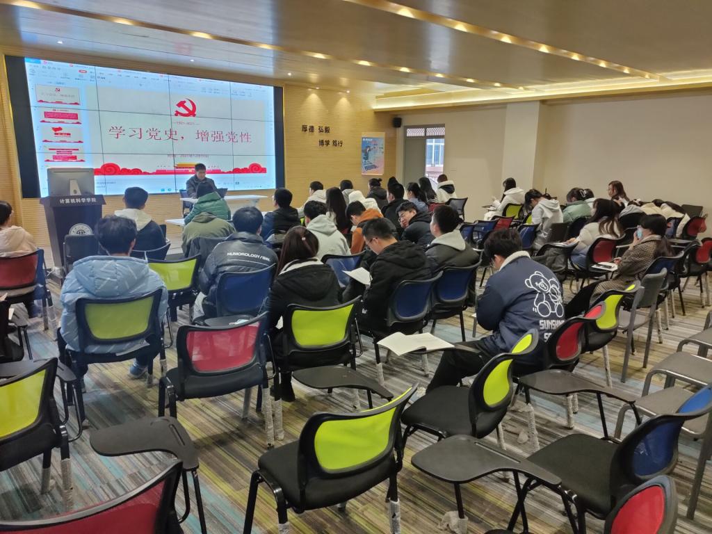 接着,本科生大数据党支部书记吴艳杰就“学史力行,加强学风建设”做了专题党课讲授。她说:学风建设是大学生成才的重要保证,养成良好的学风是毕业生走上社会后成才和发展必备的素质和条件;学风是大学精神的集中体现,是教书育人的本质要求,是高等学校的立校之本、发展之魂,优良学风是提高教育教学质量的根本保证。党员同志应起带头作用,主动参与班级管理,发挥积极引导作用,使同学们树立正确的学习观、就业观,积极响应学院的学风建设。