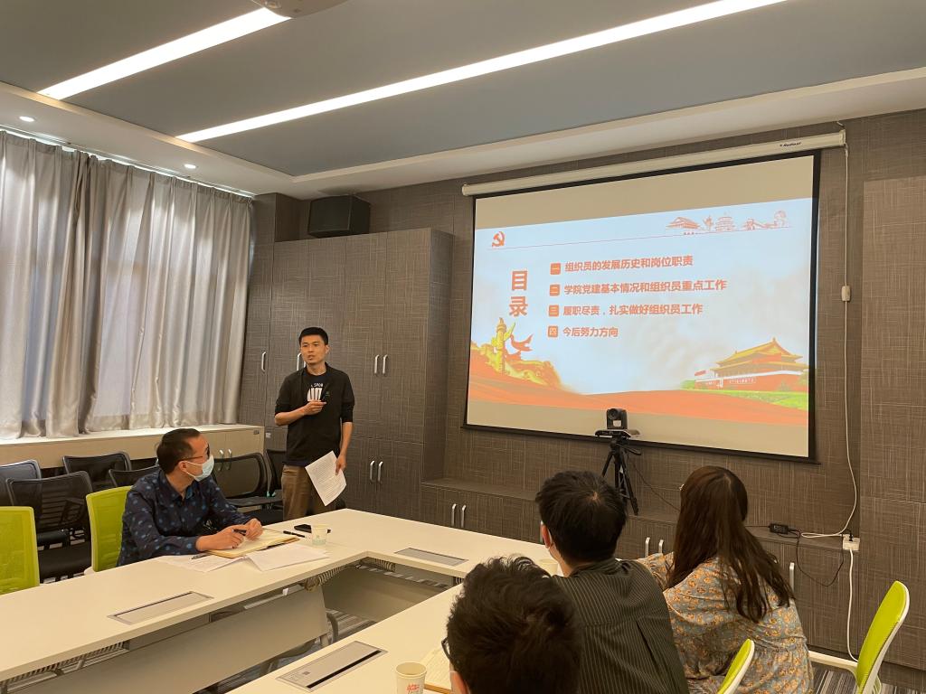 随后,学院兼职组织员朱成功做了题为《基层组织员的工作实践与思考》的报告。他从组织员的发展历史说起,经过查阅资料梳理了学院基层组织员的工作职责,结合自己的工作实践探讨了做好组织员工作必须的五个方面,即综合能力要提升、工作制度要健全、基础工作要规范、特色亮点要突出、履职尽责要担当。随后,大家围绕如何做一名称职的组织员展开了广泛讨论。