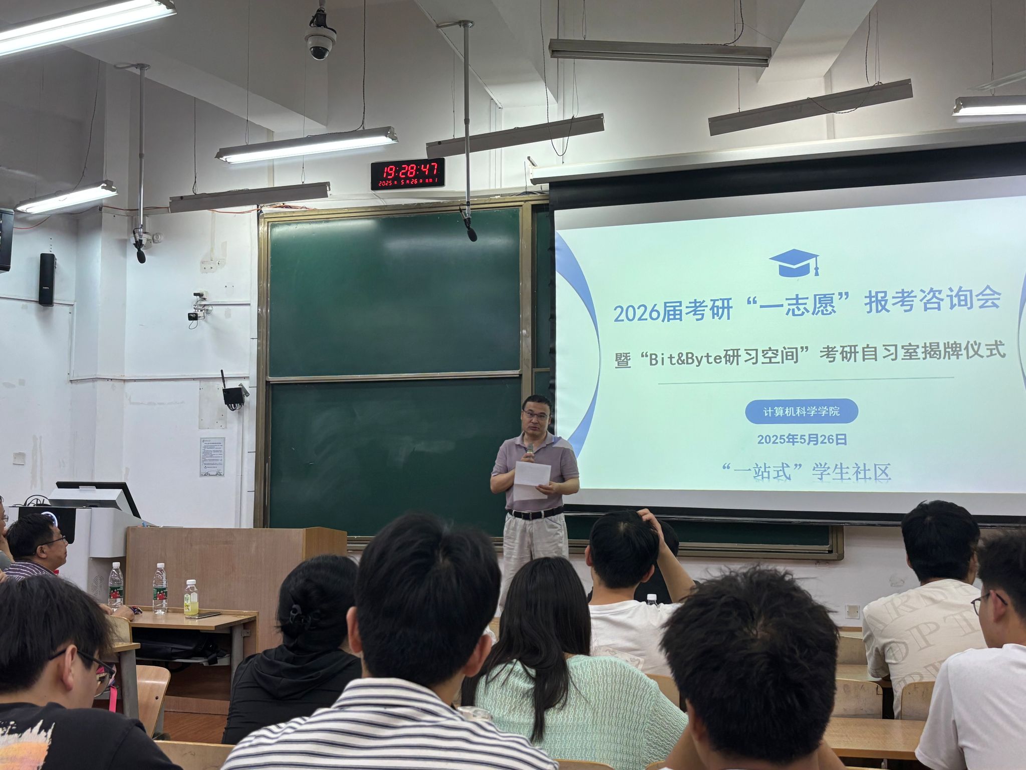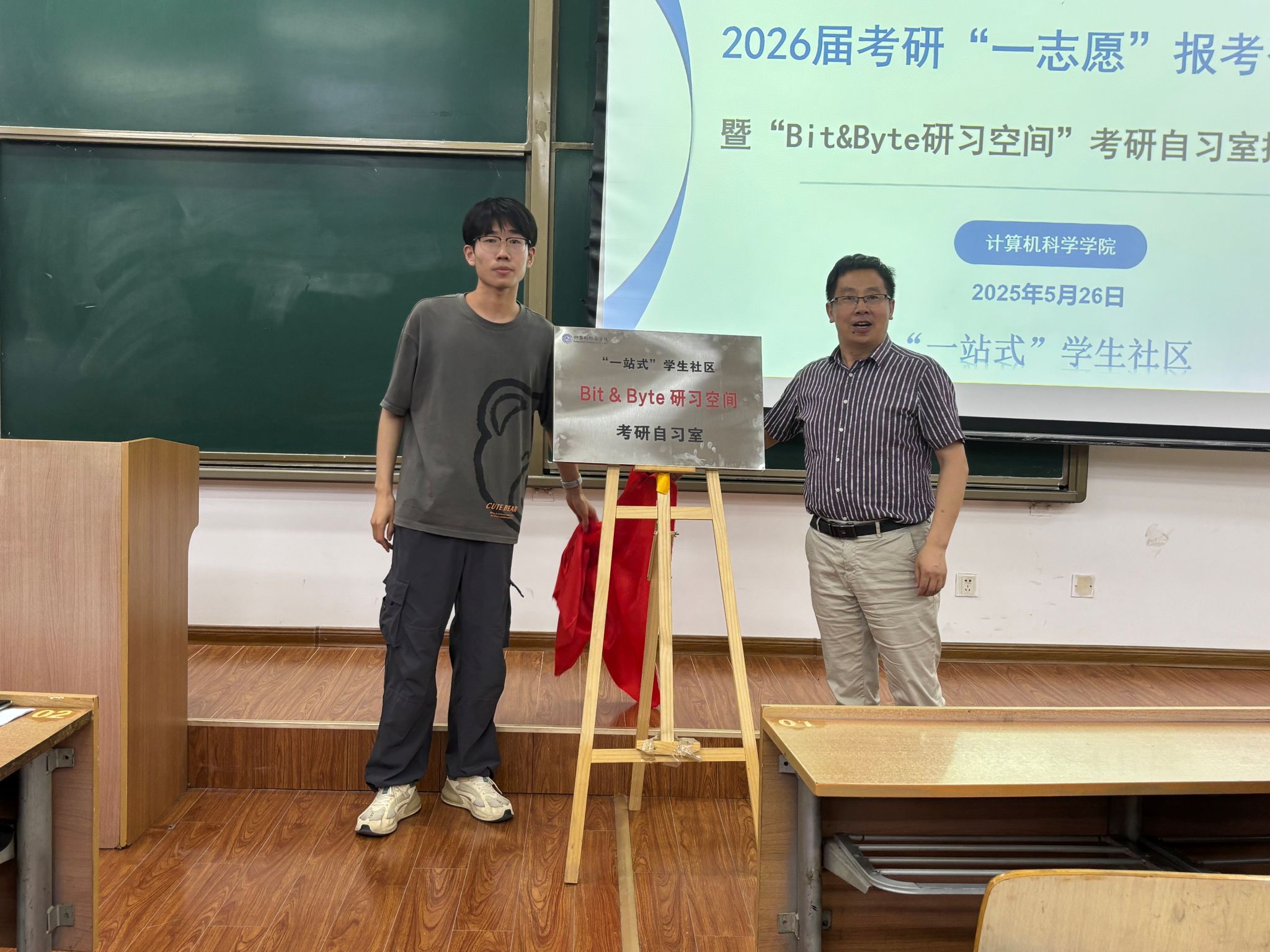 2025年5月26日晚,必赢线路检测中心在临潼校区教学楼B-135教室举办2026届考研“一志愿”报考咨询会暨“Bit&Byte研习空间”考研自习室揭牌仪式。学院副院长张凯兵、党委副书记赵勇进、副院长刘枫,毕业班考研优秀代表孙灵义及2026届考研学生参与此次活动。活动由2022级辅导员左温慧主持。