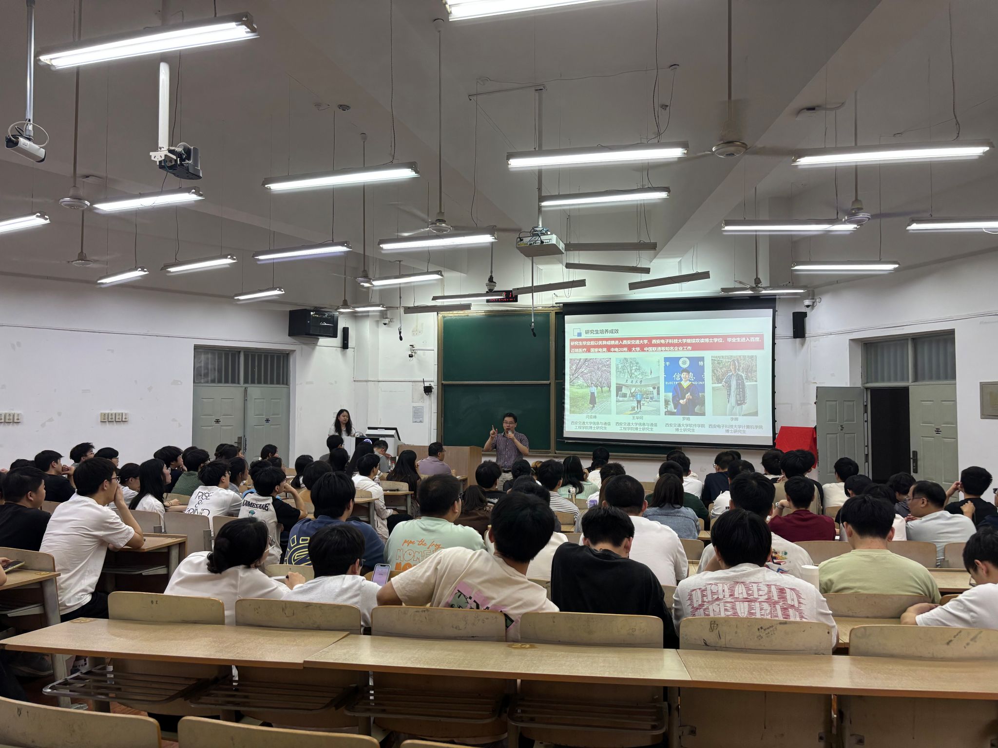 首先,张凯兵作考研动员讲话。他分享自身求学经历,提及备考时每日早出晚归泡图书馆、克服资料匮乏困境的坚持,强调考研是知识积累与心智淬炼的过程。谈及研究生培养,他表示学院导师团队将提供“全流程科研指导”,助力学生提升理论与实践能力。针对意志品质,他以往届学生考博就业情况为例,鼓励大家锚定思想、努力备考,趁年轻提升学历,学院将全程提供报考指导、心理疏导等支持,助力学子实现目标。