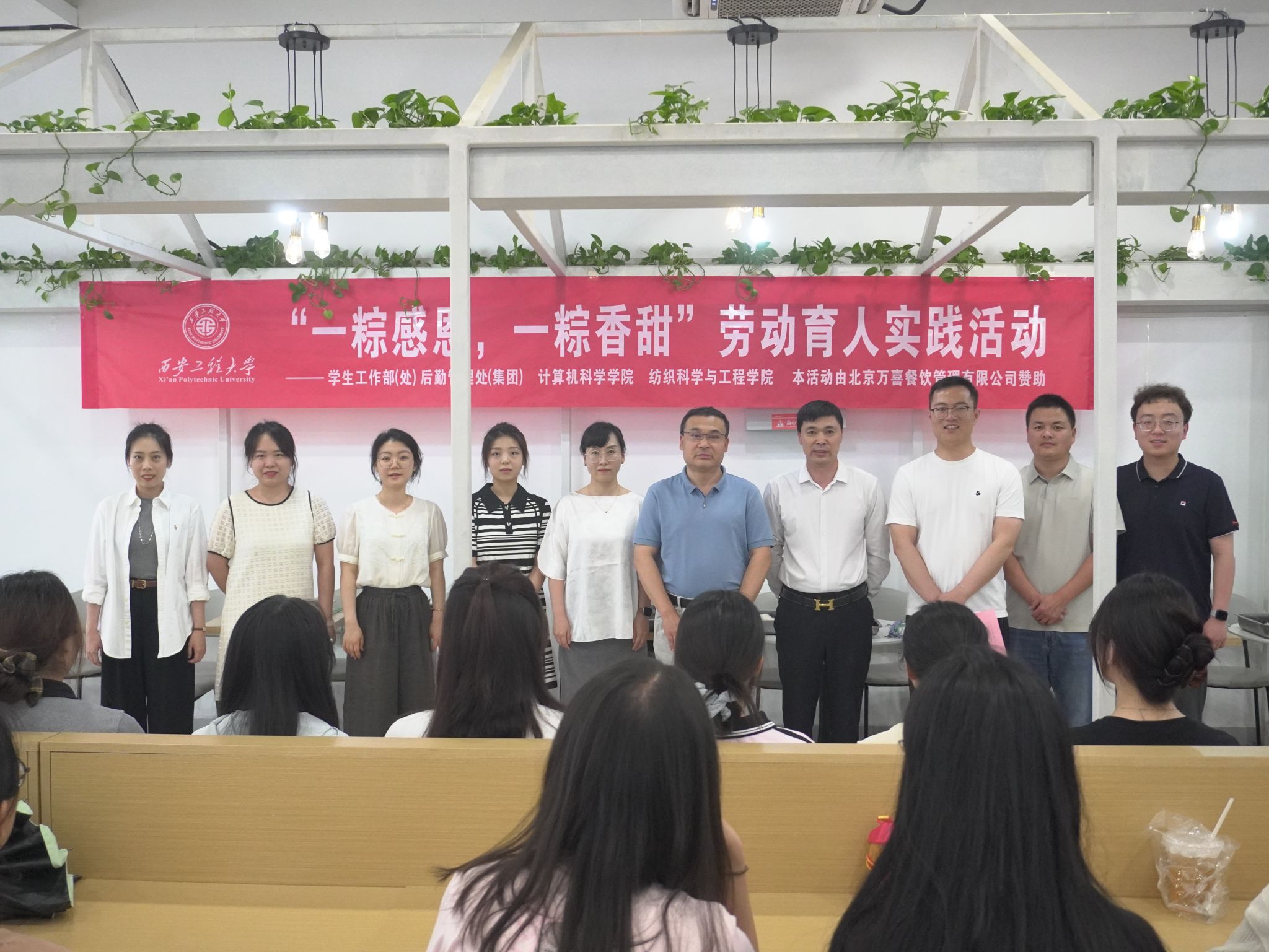 5月30日,端午假期前一天,第三届“一粽感恩,一粽香甜”端午系列劳动育人教育实践活动在我校临潼校区第一食堂食堂一楼举办。本次活动由学生工作部(处)、后勤管理处(集团)主办,必赢线路检测中心、纺织科学与工程学院承办,由北京万喜餐饮管理有限公司提供食材支持。