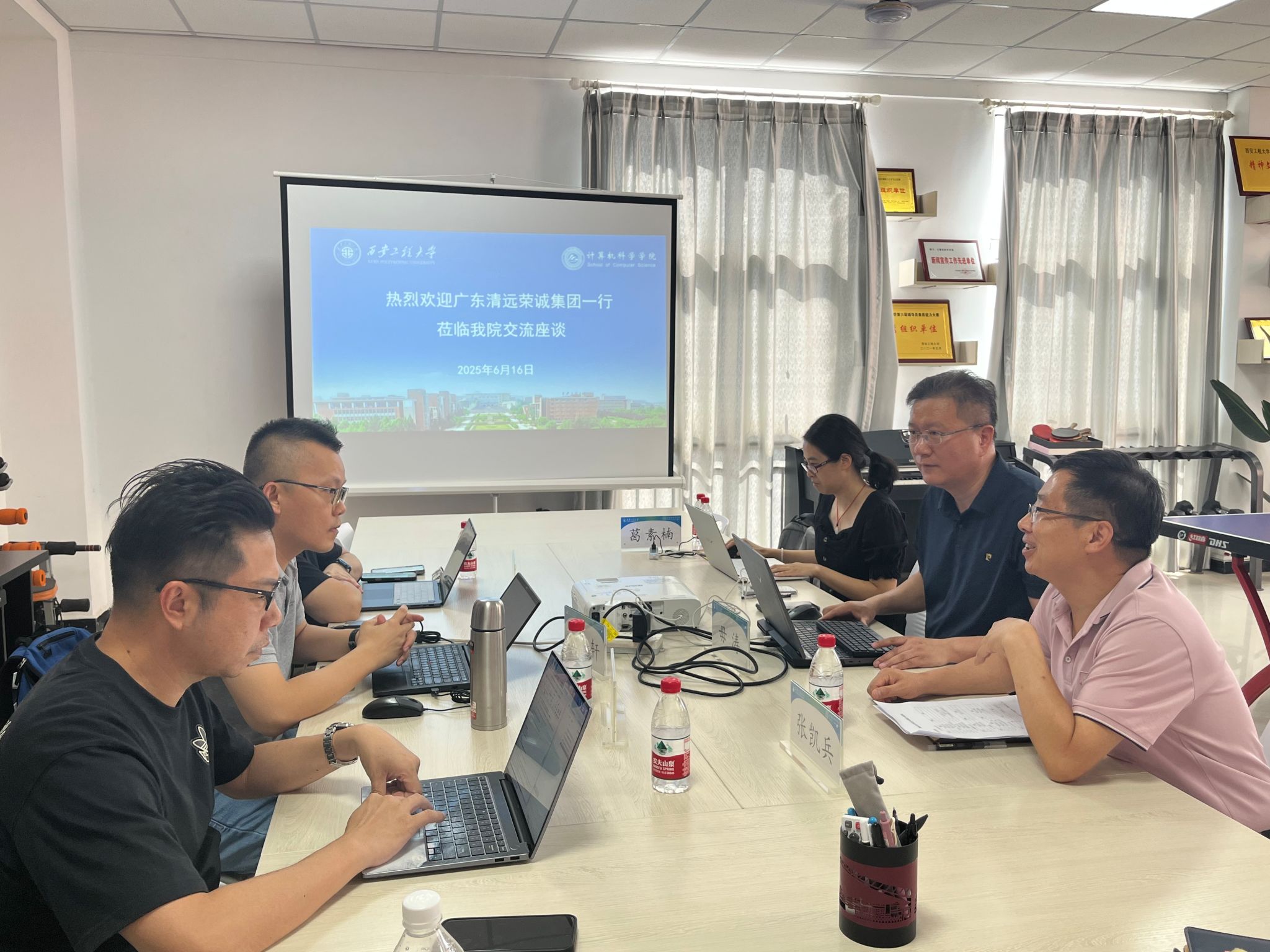 6月16日,广东清远荣诚集团人力资源总监翁士伟、开发中心执协柯智轩、系统部协理黄凌峯一行3人莅临必赢线路检测中心,围绕"数字产业人才共育"主题开展专项调研和人才招聘。学院软件工程系毋涛副教授、智能科学与技术系葛素楠博士参加调研座谈会,座谈会由学院副院长张凯兵教授主持。